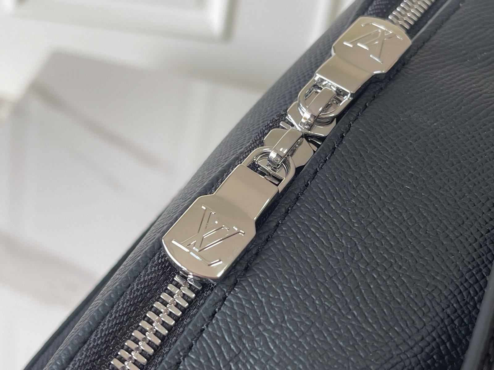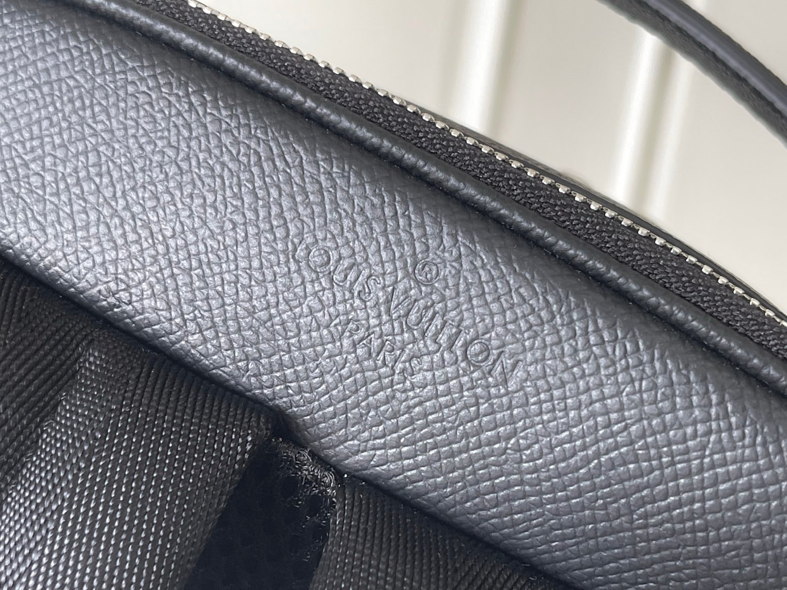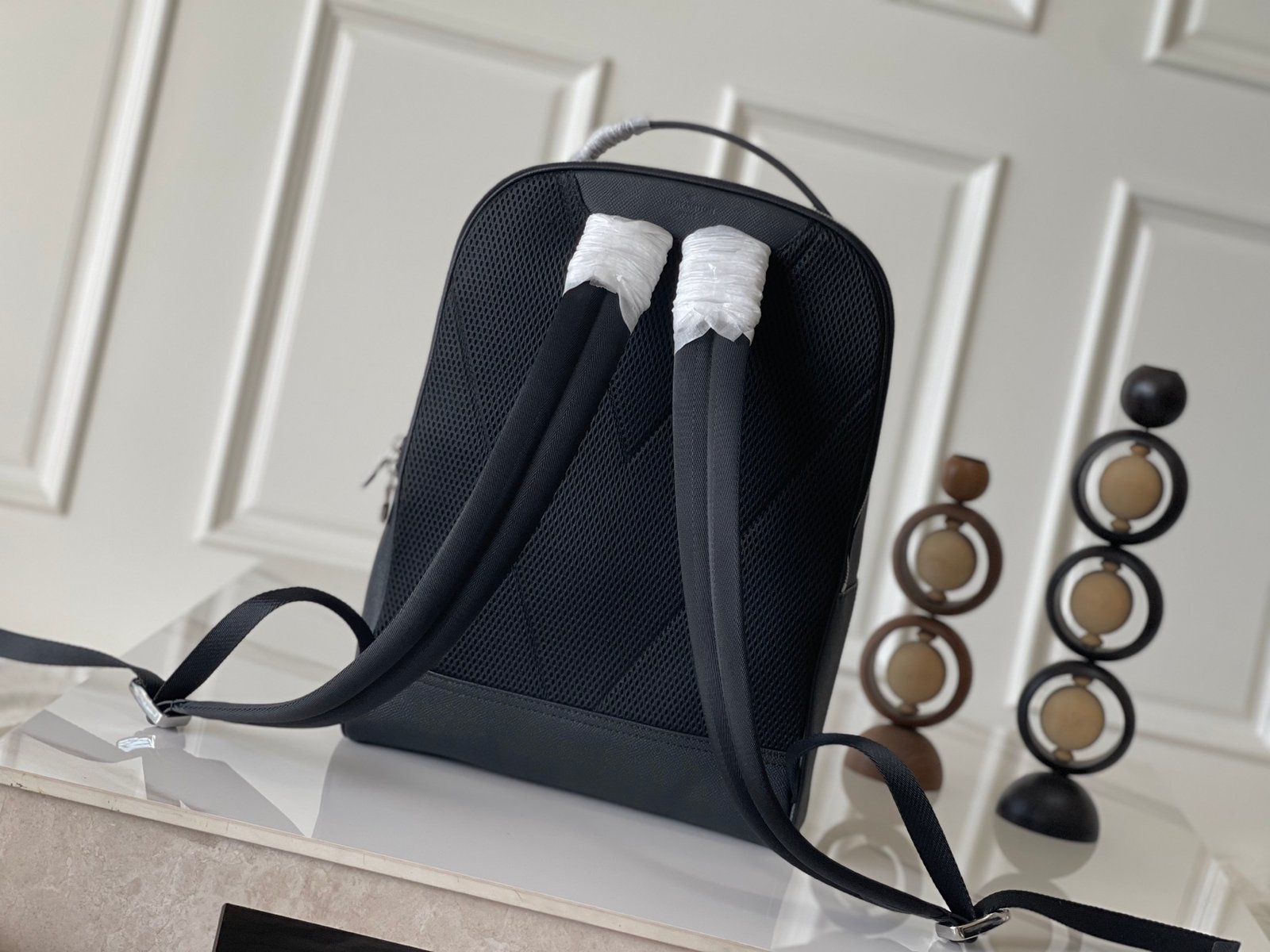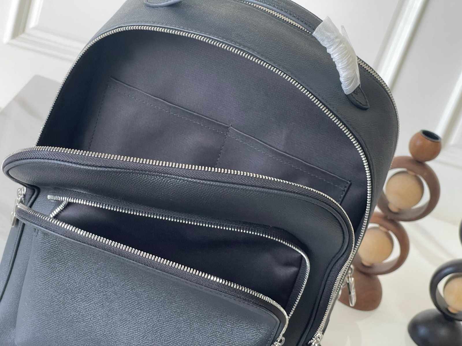 The M30977 Crosshatch Avenue Backpack combines Taïga leather with cowhide trim and metal hardware, blending practicality with elegance. The main compartment features spacious pockets and padded compartments at the front and back, while interior pockets ensure organized storage. 40 x 31 x 15 cm (L x H x W)