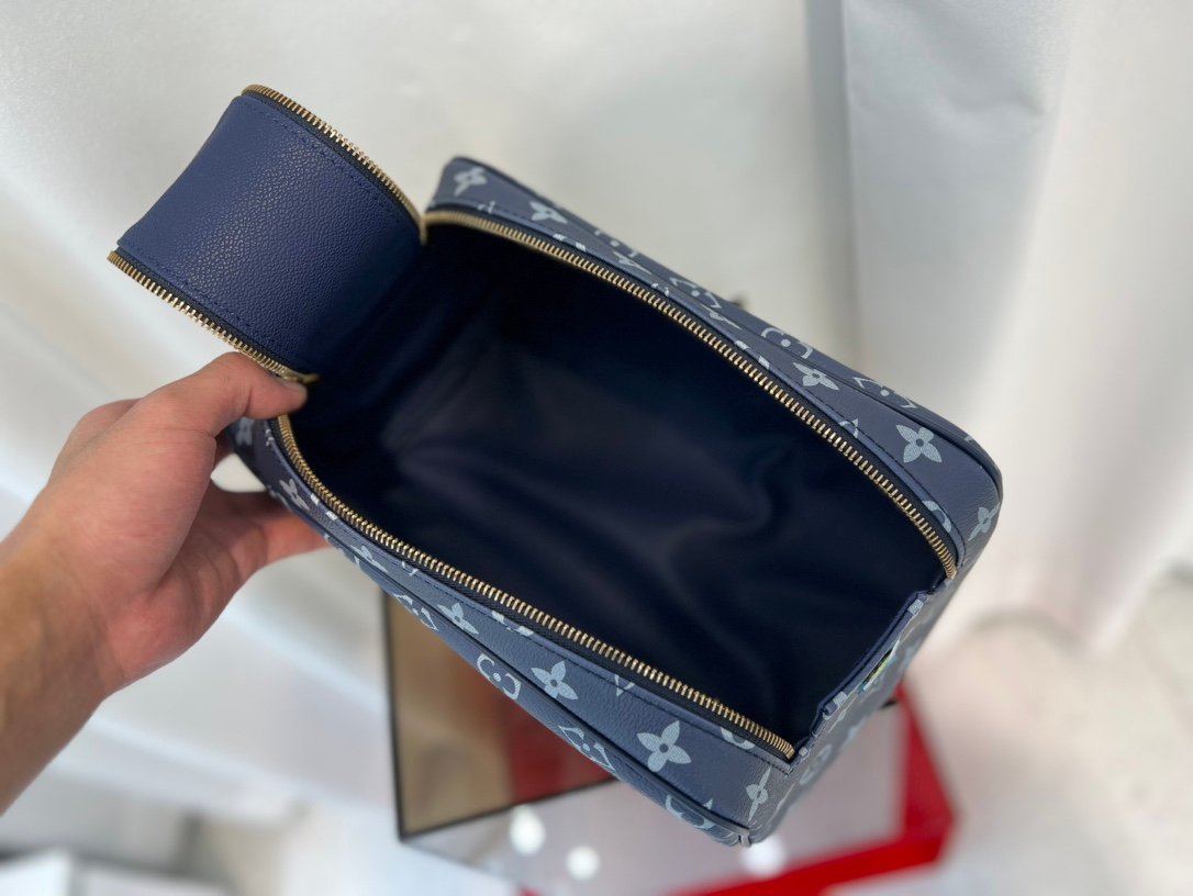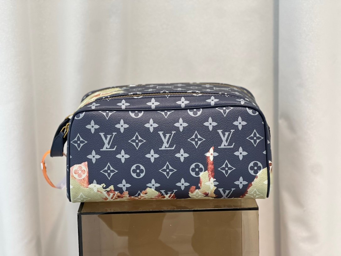 Crafted from Monogram Macassar canvas, this Dopp Kit features bold-colored leather trim that evokes designer Virgil Abloh’s signature style. With ample space to hold toiletries and personal essentials, it makes the perfect travel companion.