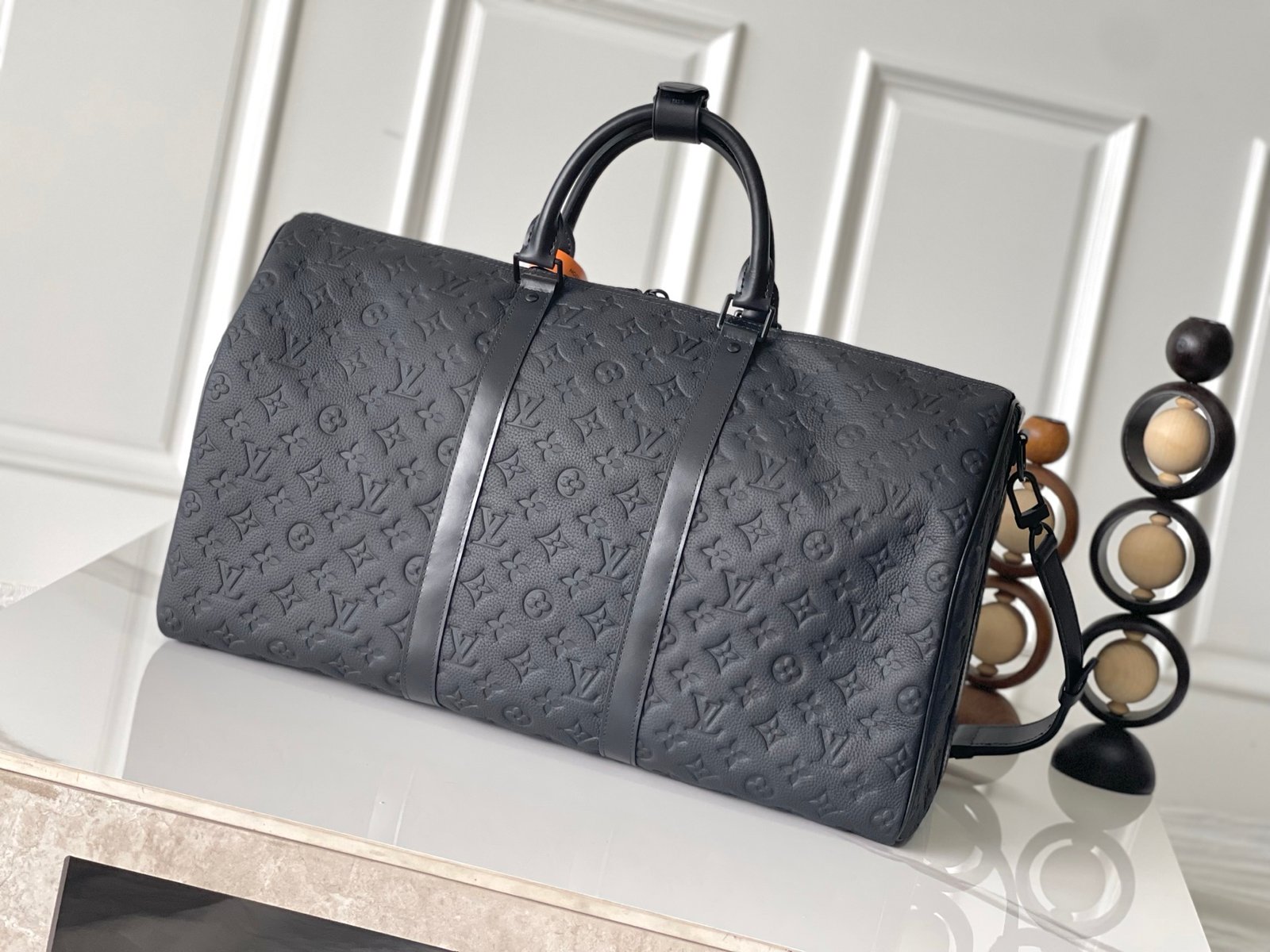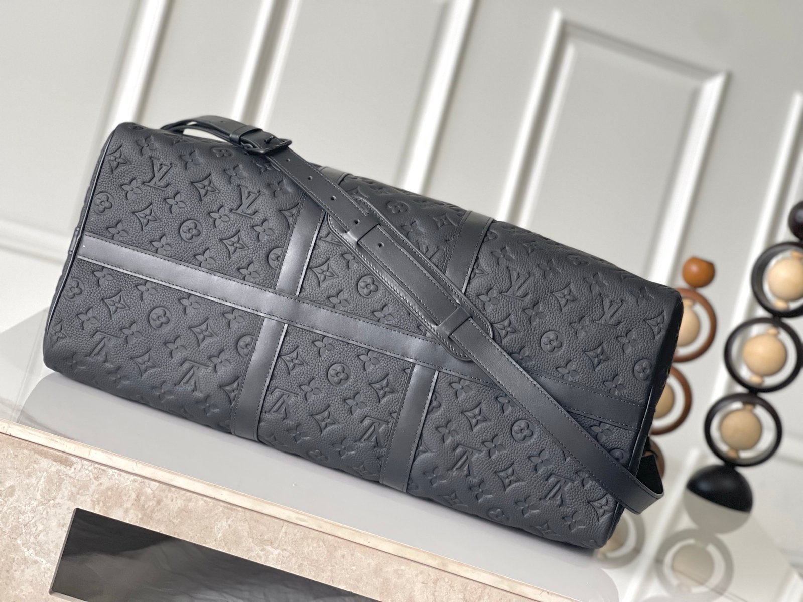 This Keepall travel bag features a Monogram pattern embossed on smooth calf leather, reimagining a brand classic while showcasing masterful craftsmanship. Its carry-on size makes it perfect for short trips. Dimensions: 50.0 x 29.0 x 23.0 cm (L x H x W)