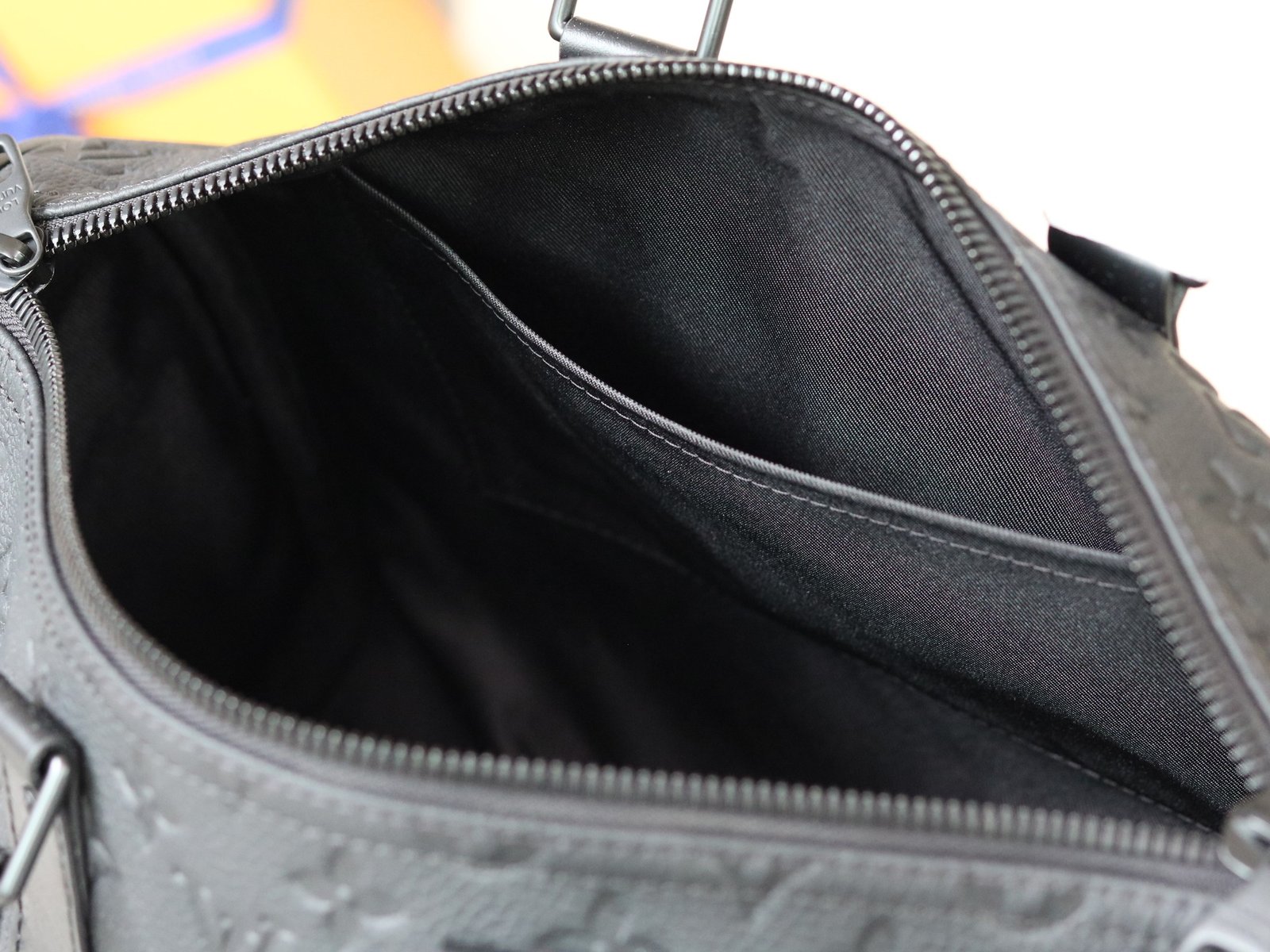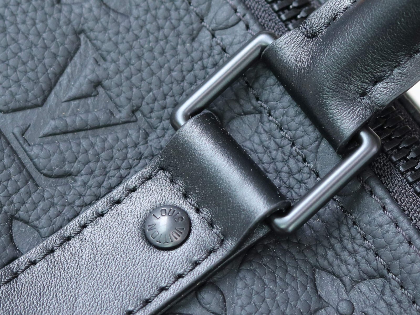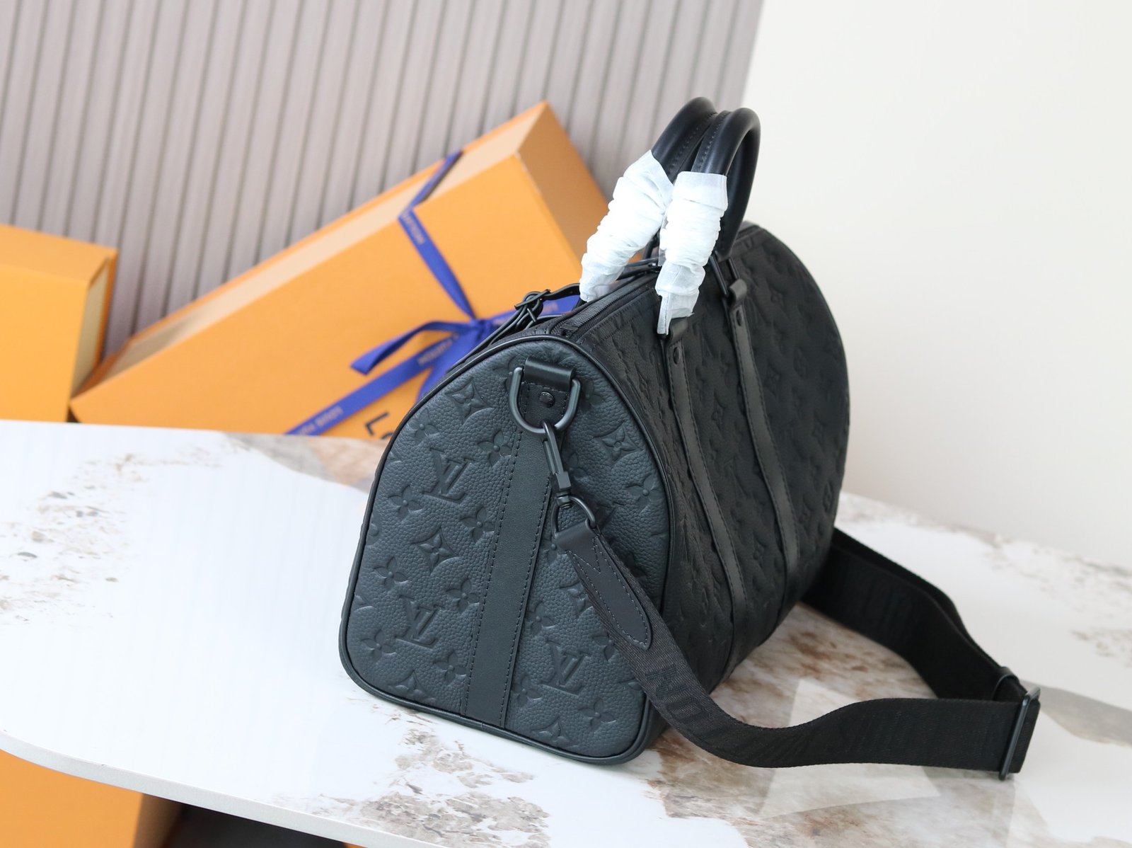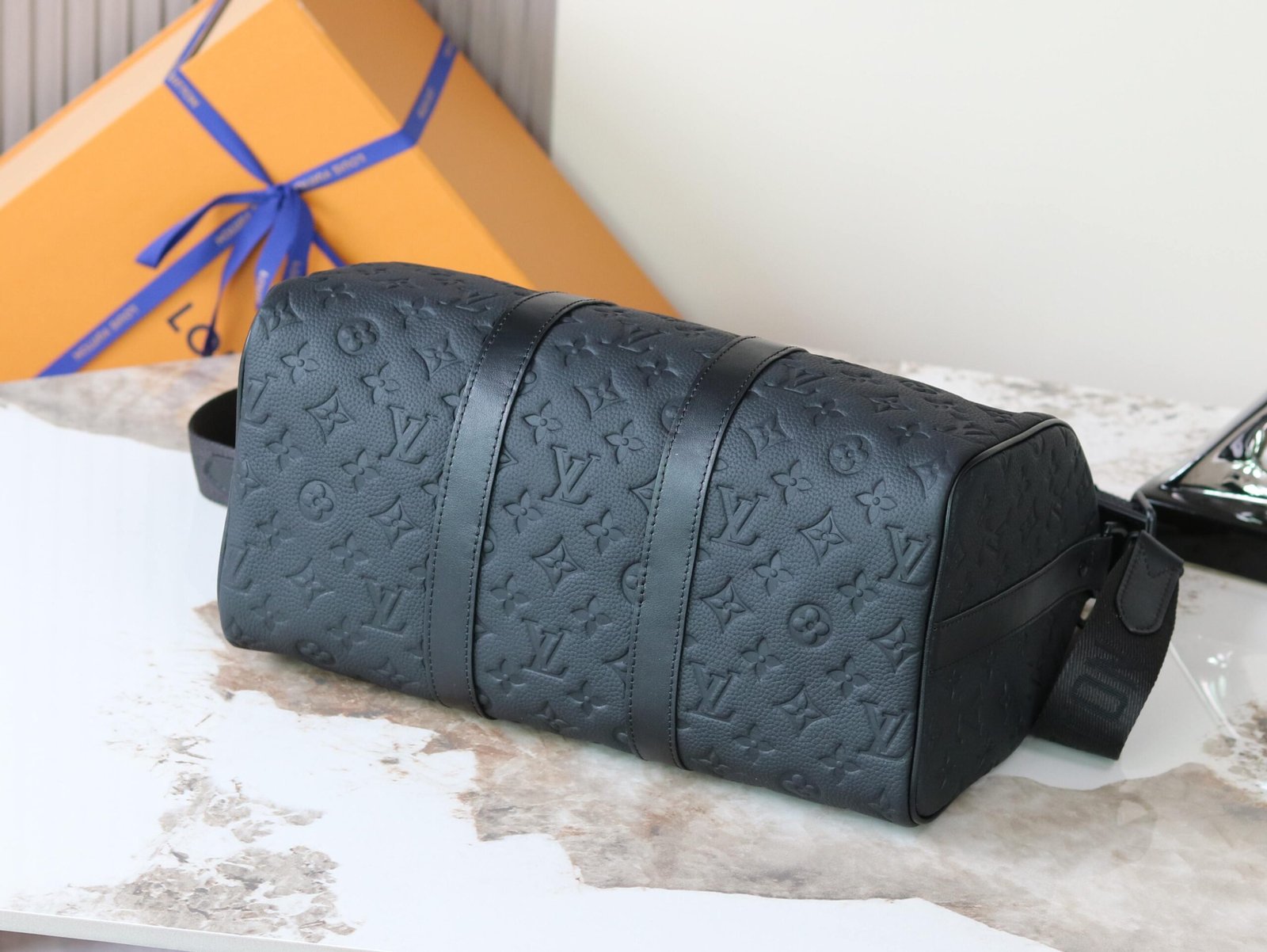 M22765 All-Leather This Keepall 35 travel bag features Monogram Shadow leather with an all-over Monogram embossed pattern, paired with matte metal hardware for a minimalist design. Its carry-on size makes it ideal for short trips. The Keepall soft-sided travel bag collection was introduced in the 1930s and remains as timeless and elegant as ever. Dimensions: 35 x 21 x 16 cm