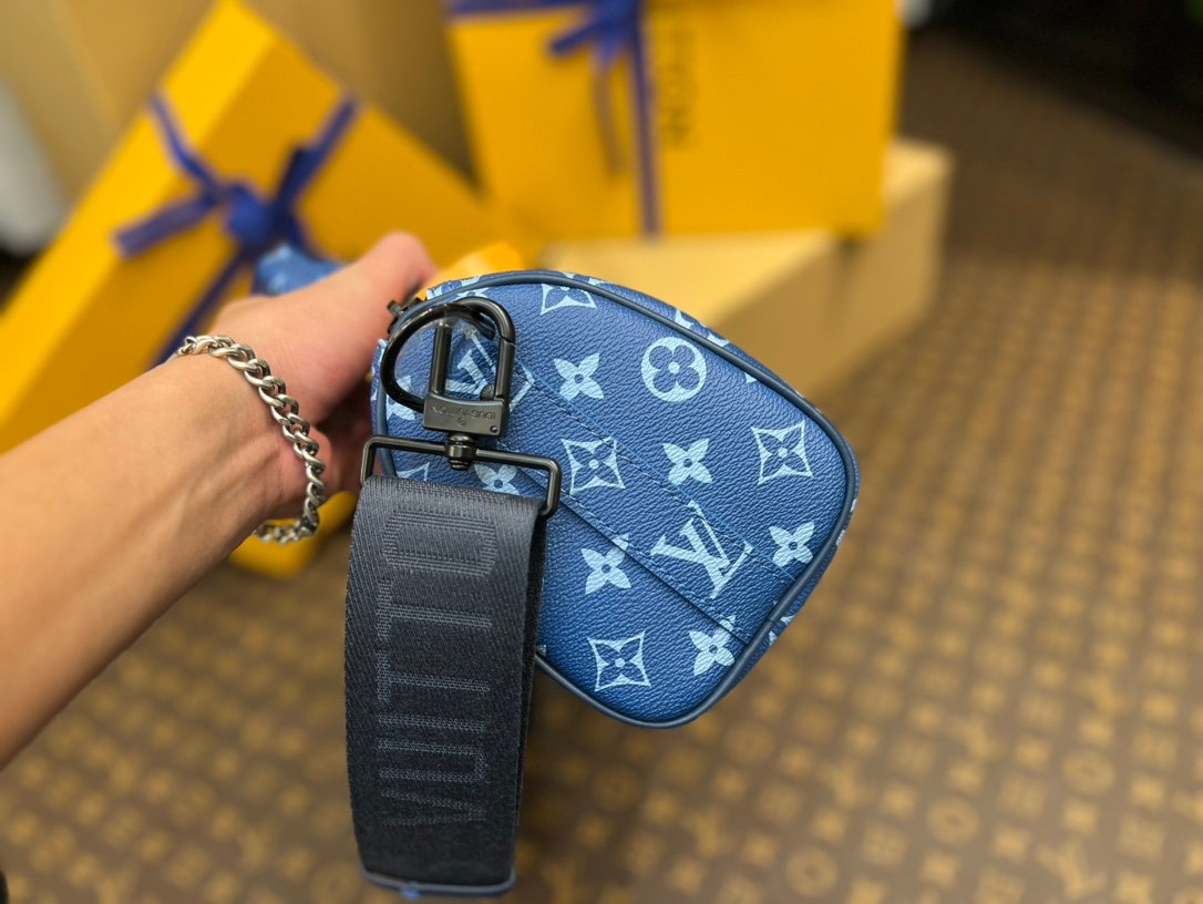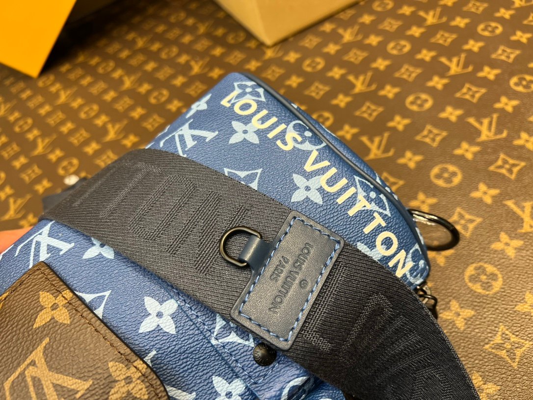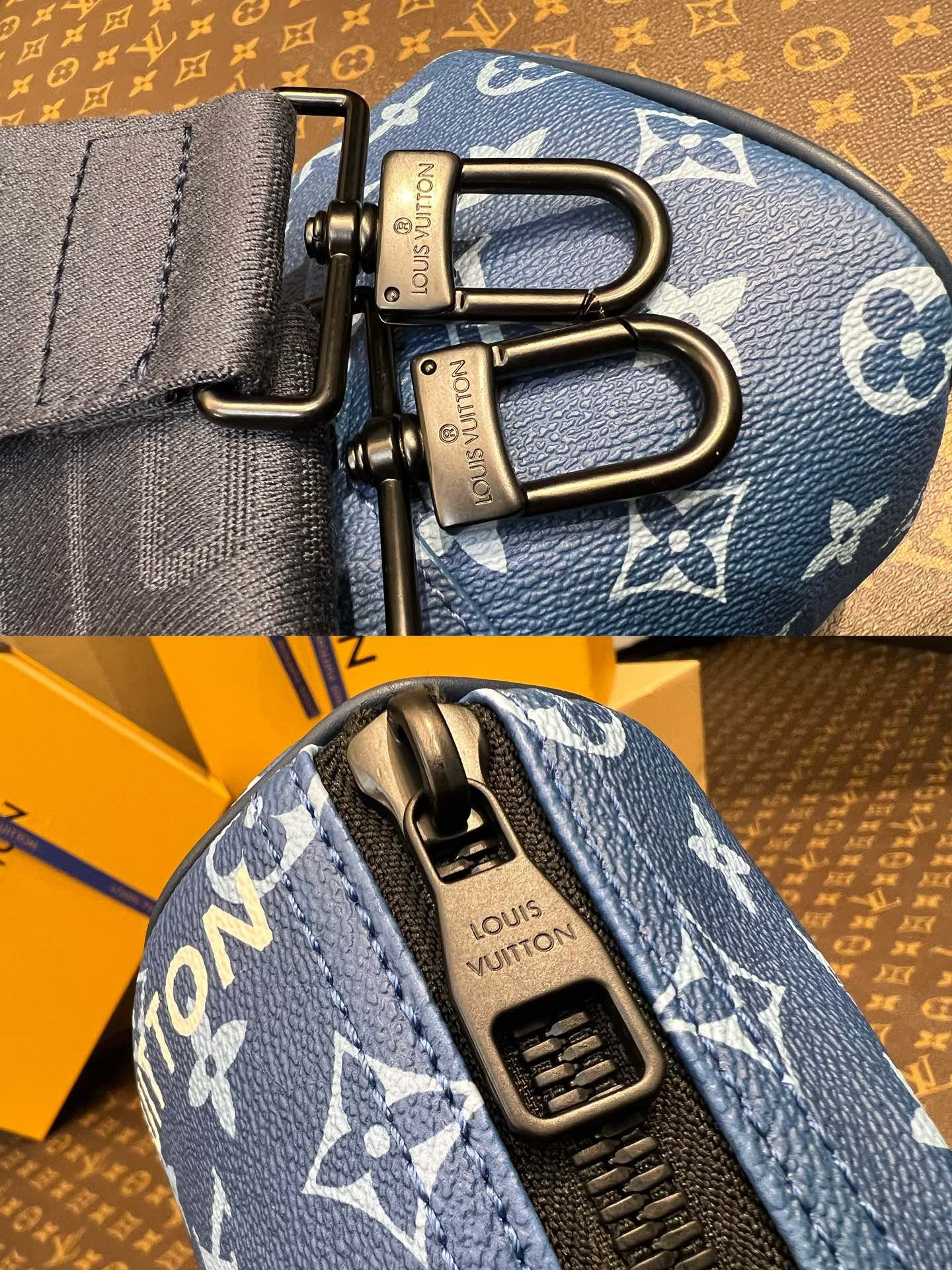 M46803 Blue Floral Men’s Keepall Bandoulière 25 Bag This Axy Keepall Bandoulière 25 city bag is crafted from coated canvas and is a mini version of Louis Vuitton’s iconic Keepall travel bag. The bag’s details echo the original design, including a leather top handle and side straps, and features a detachable, adjustable wide shoulder strap for carrying over the shoulder or across the body. Dimensions: 25 x 15 x 11 cm (L x H x W)