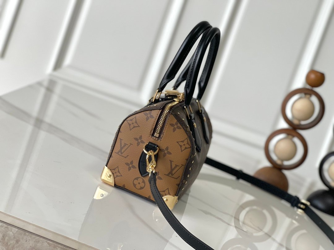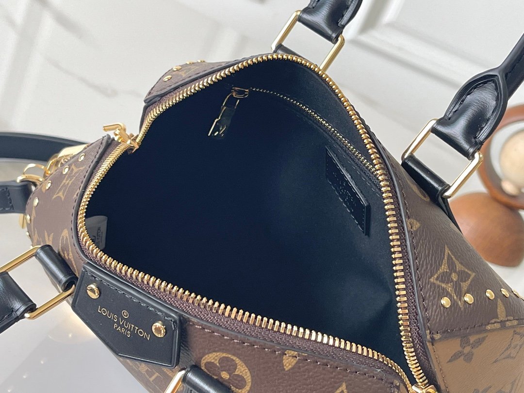 This classic Speedy Trunk has been reimagined with a striking new aesthetic and debuted at the Early Spring 2025 fashion show. Featuring traditional trunk details with exquisite gold-tone finishes, the bag is crafted from the brand’s Monogram canvas and accented with contrasting Monogram Reverse piping, perfectly embodying Nicolas Ghesquière’s signature design. The bag features a detachable shoulder strap and chain strap, allowing it to be worn crossbody, over the shoulder, or carried by hand.