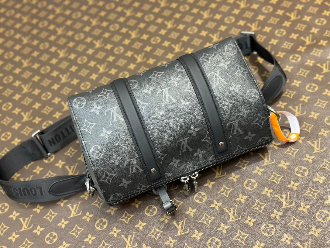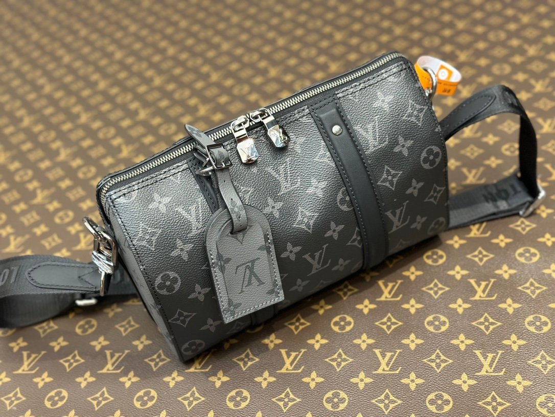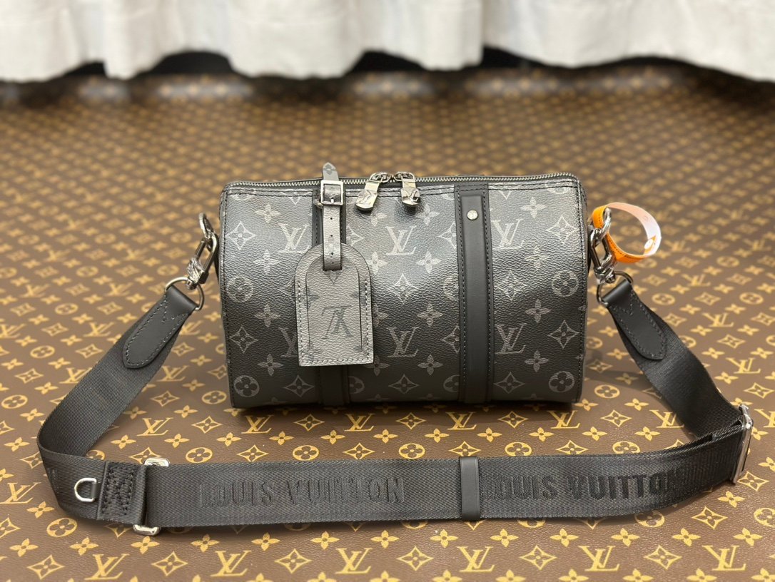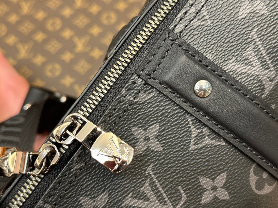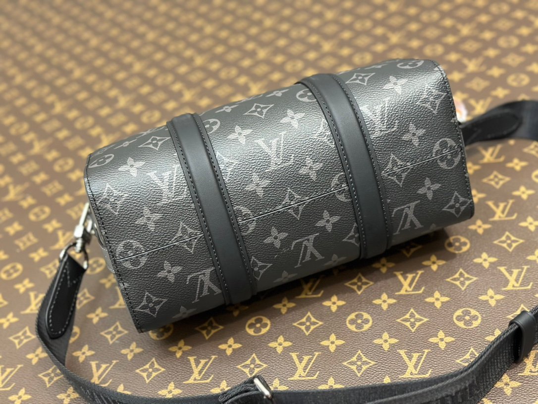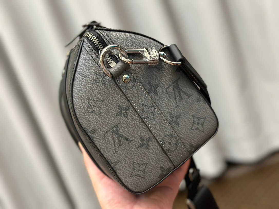 The M45936 Keepal travel bag distills the classic silhouette into a trendy urban handbag. The playful inverted Monogram pattern on the sides cleverly echoes Kim Jones’s 2018 Upside Down collection. Crafted from Monogram Eclipse canvas and featuring a detachable shoulder strap, it effortlessly carries your daily essentials. Dimensions: 27 x 17 x 13 cm