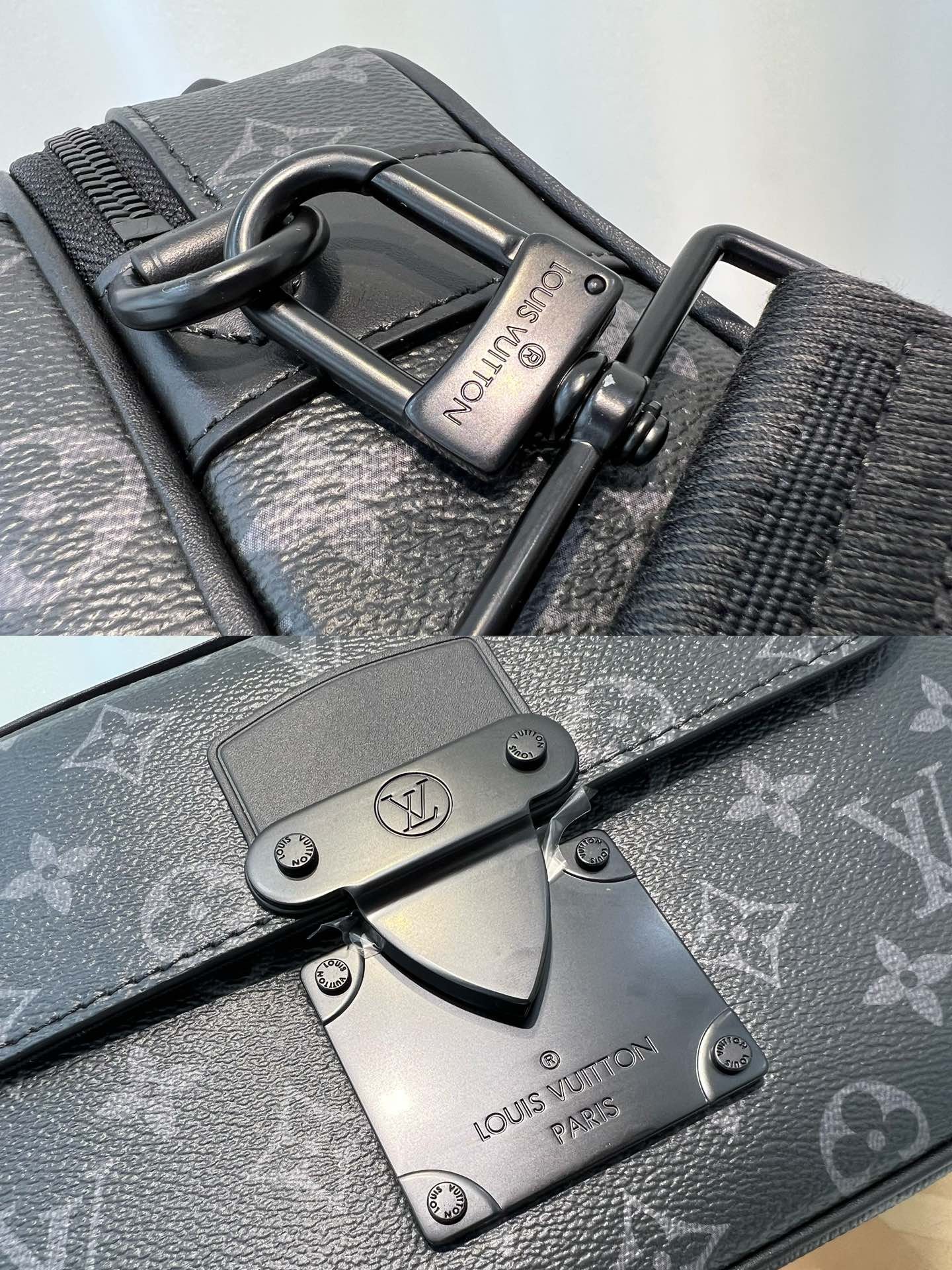 M45806 Black Floral Crafted from Monogram Macassar canvas, this bag features a new magnetic clasp inspired by the trunk locks designed by Georges Vuitton in 1886. A special finishing process gives this magnetic metal clasp a striking, modern look. It also features a spacious zippered compartment, a leather handle in the style of a trunk, and an LV-embossed shoulder strap, making it both stylish and practical. Dimensions: 22 x 18 x 8 cm