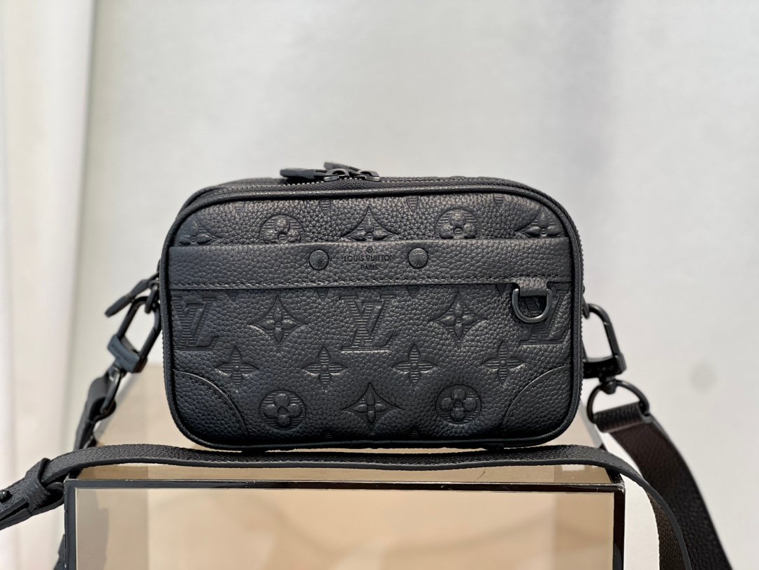 The M82544 Embossed Black Neo Alpha Bag captures the essence of past Alpha bag designs with its rounded lines, crafted from soft Monogram Eclipse canvas to create a casual silhouette. The spacious interior features a zippered compartment and a front pocket, accommodating daily essentials such as a phone, cards, and keys. It comes with a detachable and adjustable leather shoulder strap. Full-leather embossed black, black floral black leather, front D-ring, double-layer compartment, camera bag, box bag, small crossbody bag oo [Handshake][Handshake] Monogram Eclipse coated canvas, calf leather trim, calf leather lining, metal hardware, zippered compartment, front patch pocket, D-ring on front, shoulder strap: removable and adjustable!!
