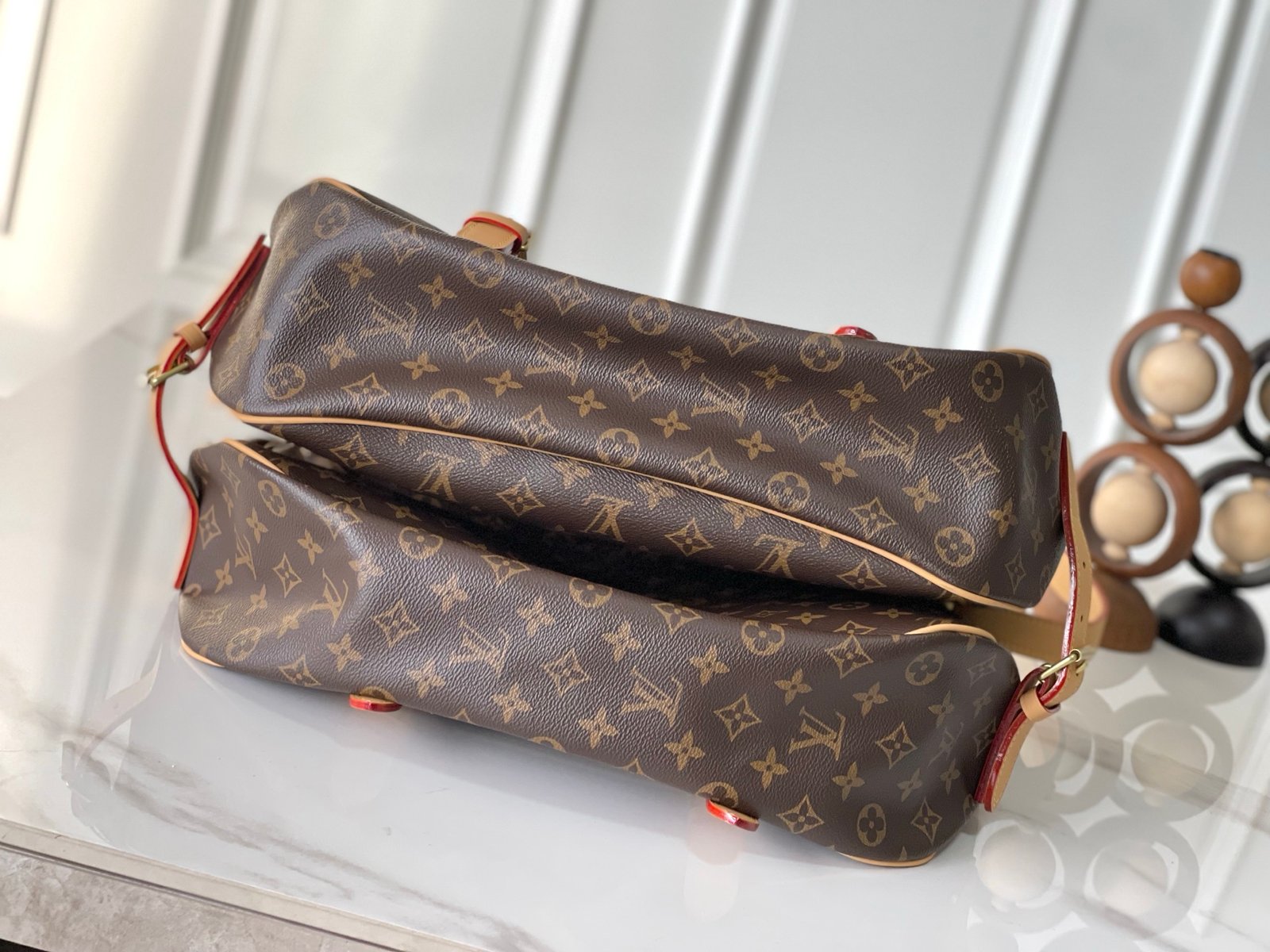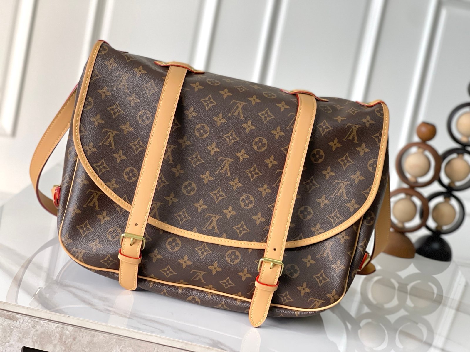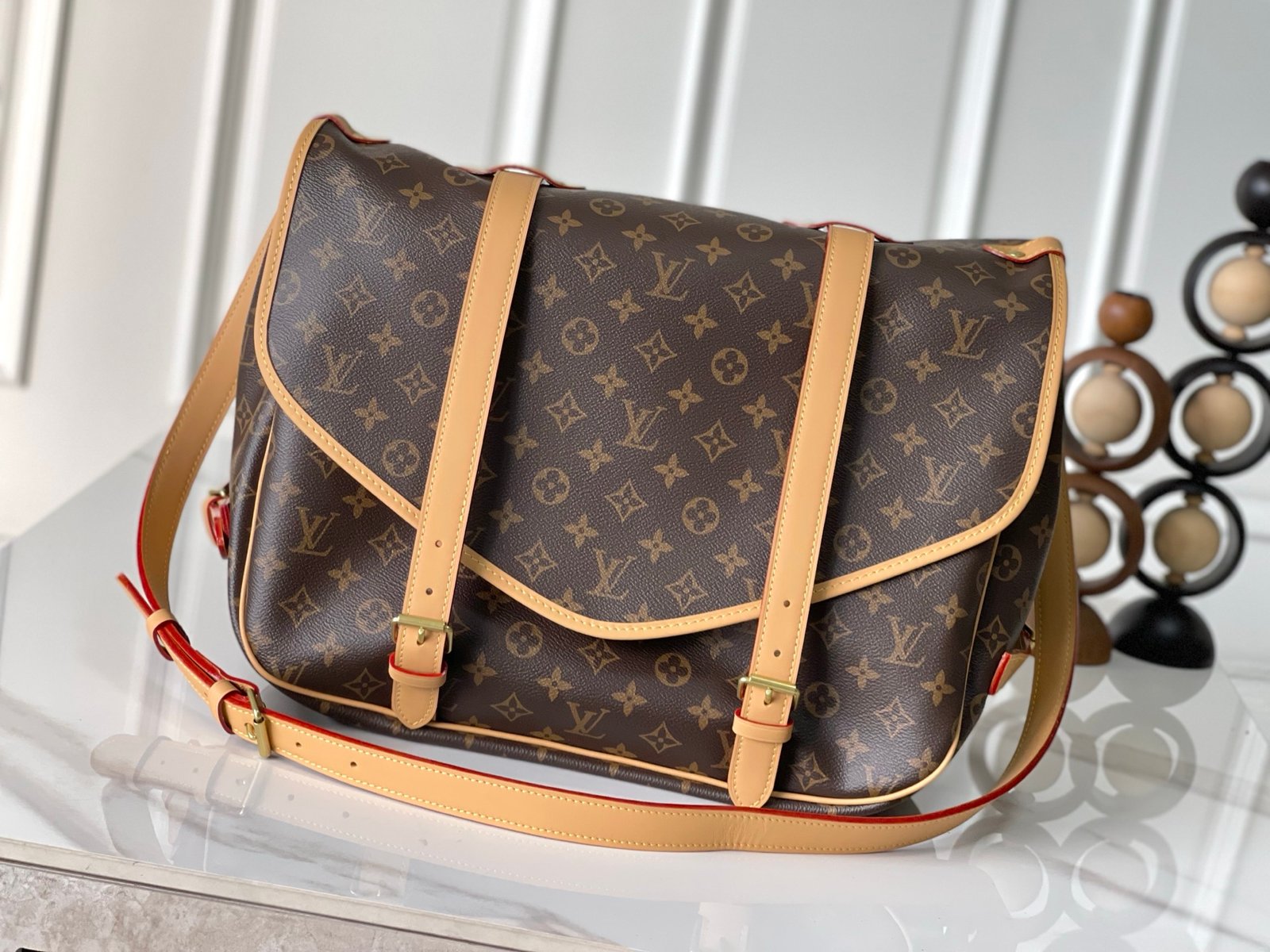 M42252 Crafted from Monogram canvas, the medium-sized Saumur handbag embodies Louis Vuitton’s natural elegance. Worn casually across the body, it exudes a stylish charm, while the refined calfskin trim accentuates its feminine silhouette.